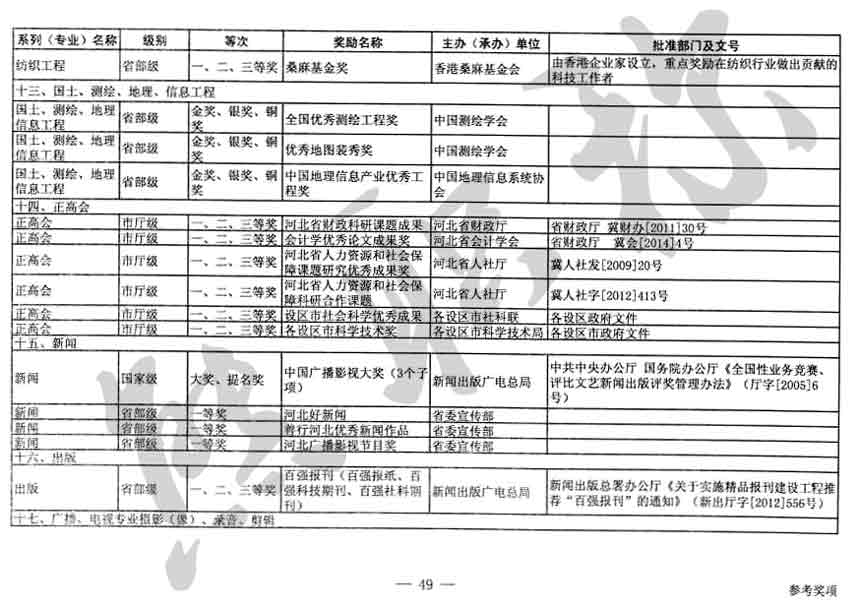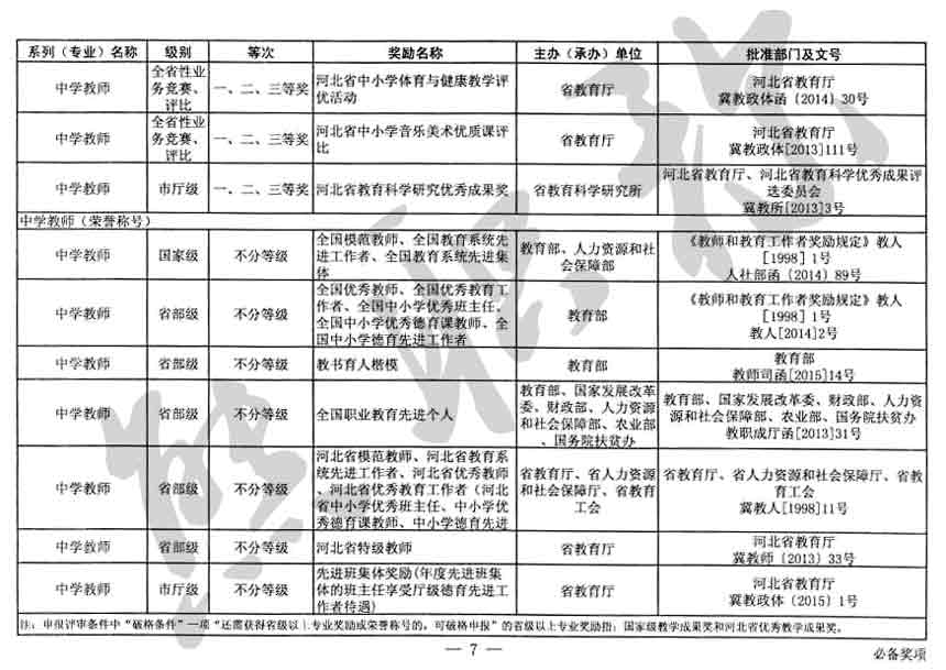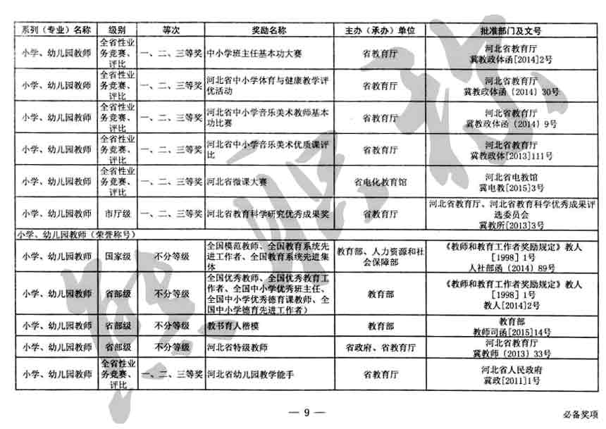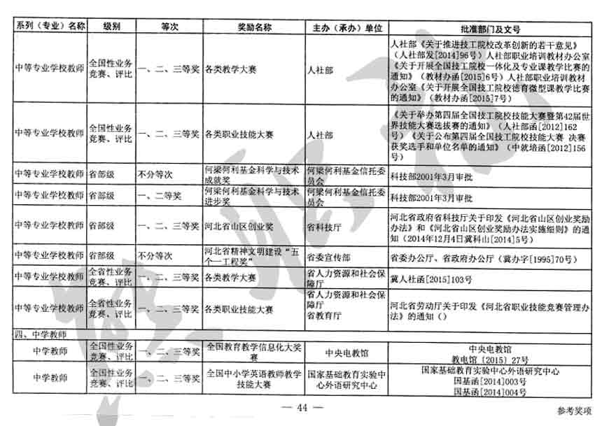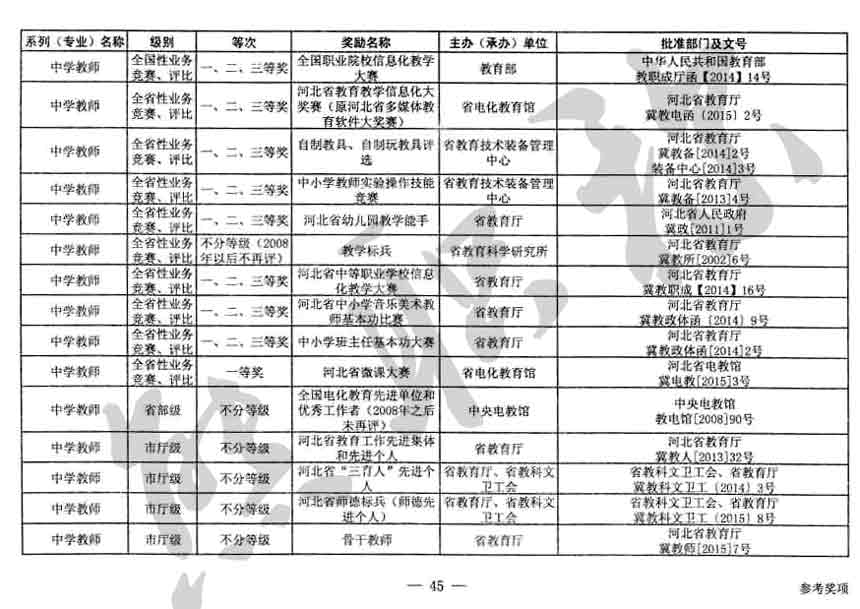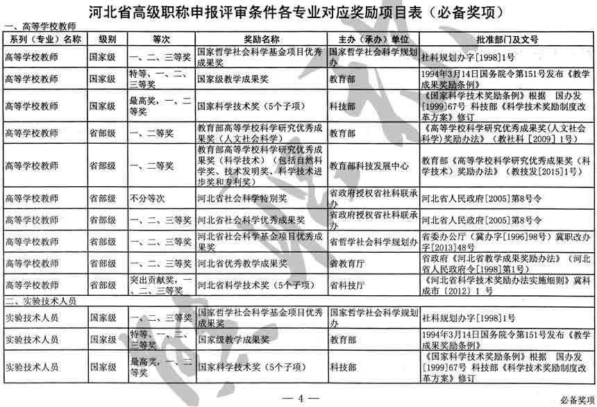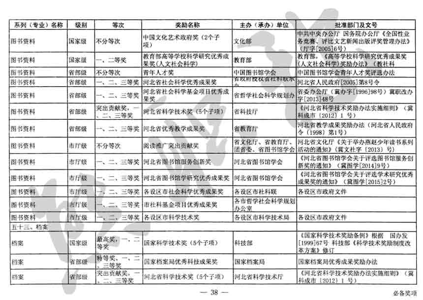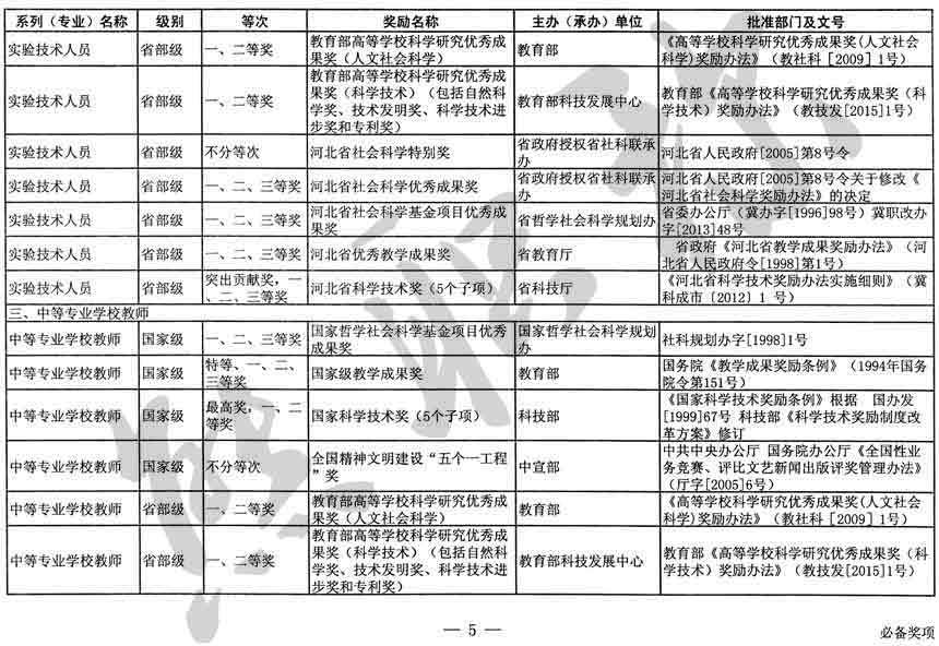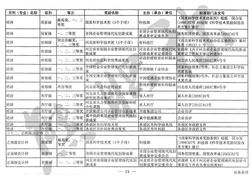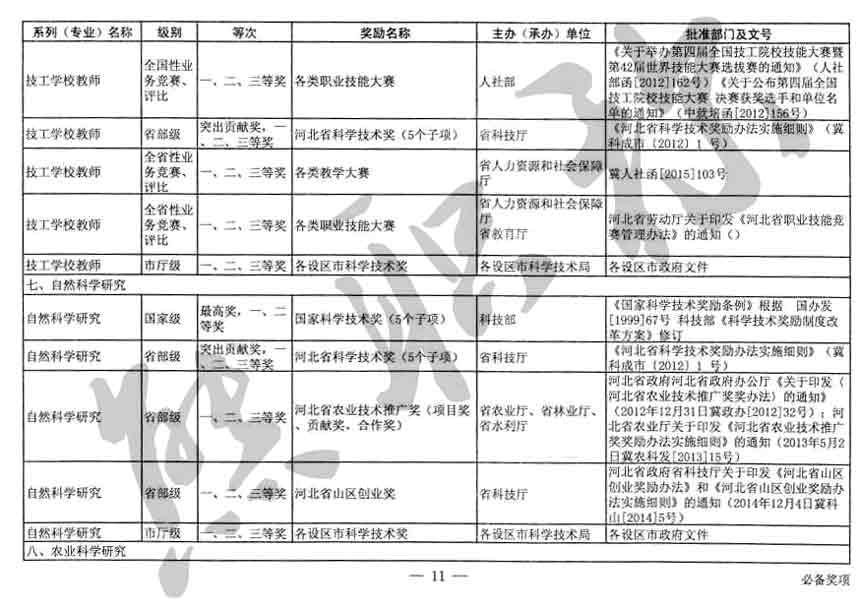 職稱評審業績成果中包含職稱評審獎項,那么究竟什么是職稱評審獎項,具體各個專業的河北職稱評審獎項劃分是怎么來的,熊老師今天就把咱們河北省公布過的職稱評審獎勵給您發一下,人才辦理職稱的時候可以有一個參考,建議收藏,這是一整份, ………